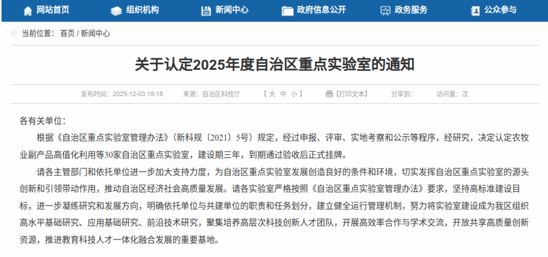 20262025年12月3日,新疆维吾尔自治区科学技术厅公布2025年度自治区重点实验室认定名单,“新疆碳纳米材料制备与应用重点实验室”成功获批,该实验室由bw必威西汉姆联官网牵头,联合国内知名高校同济大学、喀什荣薪再生资源利用有限公司等行业优势单位联合申报组建。 该实验室是新疆首个专注于碳纳米材料领域的自治区重点实验室。它的成立标志着自治区在该方向的高水平科研平台建设取得重要突破。实验室实行主任负责制,由同济大学教授、喀什...